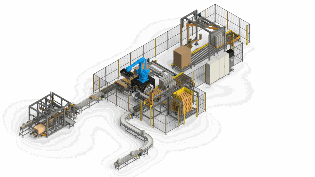 Nossas soluções em automação de fim de linha garantem agilidade, precisão e organização nas etapas finais da produção, otimizando o transporte e paletização dos produtos de forma contínua e padronizada.